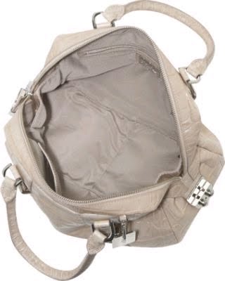 Deux poignées avec un 6 "sont joints à la chute de métal poli D-anneaux avec onglets élégant qui s'étendent sur le devant et le dos avec boucles de fonctionnement. Hanging poli étiquette de bagage est gravé" LRL. "